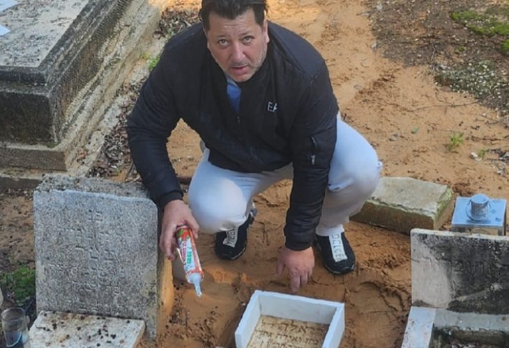 'My heart was torn': Vaknin as he restores the headstone of a small childThe moment Michael Michel Vaknin stood alone before the small grave, he felt utterly shattered. In the children's section at the edge of the old cemetery, he found himself bent over a forsaken marble tombstone, broken into pieces, its inscription faded and erased. Wiping away tears of sorrow, he embarked on a mission that, over recent years, has become his life's work: restoring headstones on a volunteer basis.