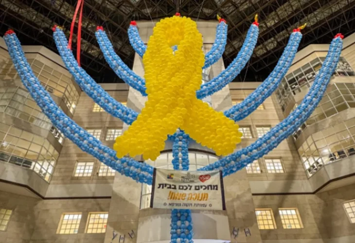 This year, Deborah notes that they decided to include the symbol of the captives on the menorah, as a testament to hope and prayer that the miracles of Chanukah will finally bring them home. "As faithful individuals, the menorah is not just about the light of Chanukah but also our belief that light will prevail over darkness, and we will celebrate miracles together," she explains. "Moreover, Schneider was the hospital that welcomed the initially released captives with warmth and professionalism. There's an inherent connection between the captives and the medical community, especially since they aren’t receiving the medical assistance they need. Our goal with adding the symbol to the menorah was to deliver a clear message – 'We are with you and will not forget you.'"