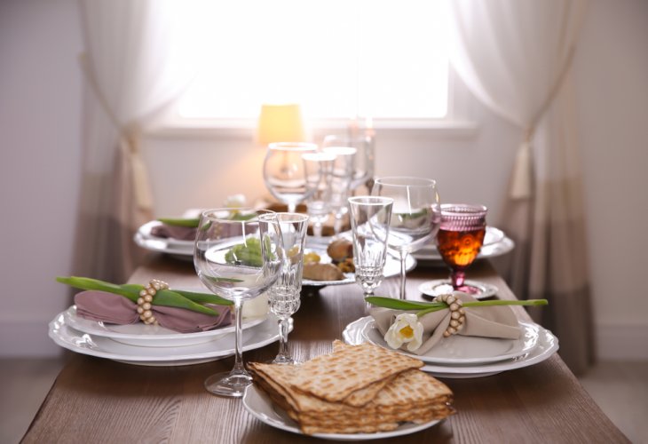 10. Matzah takes center stage in the design, blending with refreshing blue hues