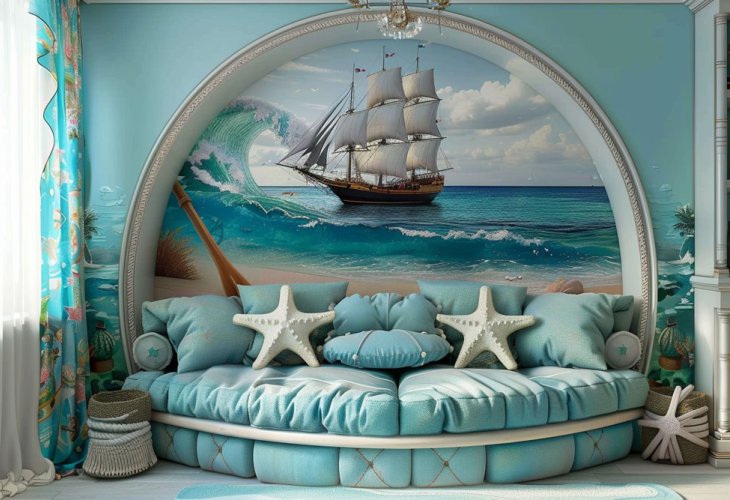 A children's room inspired by the sea with playful yet calming blue shades.