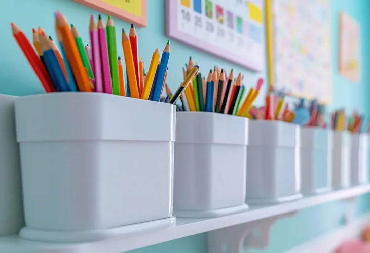 For storing books and educational supplies, consider installing simple shelves. You can find affordable options at stock stores or browse giveaway and second-hand websites. Choose a color that complements the room’s design, and if you’re unsure, classic white is always a safe choice as it blends easily and lets colorful accessories stand out. Be sure to measure your wall space before purchasing to ensure a good fit. It’s also important to check the shelf’s quality, and if buying second-hand, confirm with the seller how much weight it can hold, especially if you plan to store heavy textbooks.