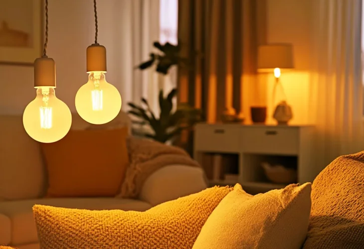A small change in lighting can make a big difference. To create a fall ambiance at home, switch from cold white light bulbs to warm yellow ones. Additionally, add reading lamps with soft light, table lamps with warm-colored shades, and even small strings of lights that cast a soft and inviting glow. This warm lighting helps create a pleasant and homey atmosphere that's just right for the season.
