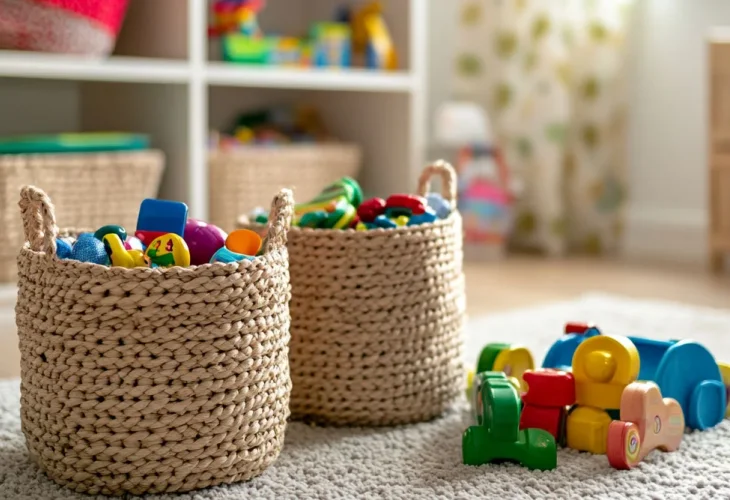 Solution: First step—sort and give away. Your children don't need every toy filling the room. Conduct a serious sorting session every few months, donating unused toys or discarding broken ones. Organize toys and items with storage boxes, smart shelves, and colorful baskets that match the design concept.