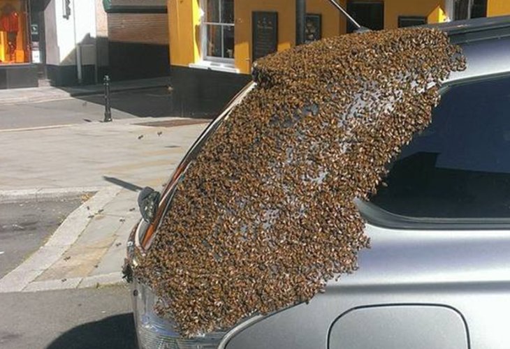 A peculiar scene unfolded in Wales when an enormous swarm of nearly 10,000 bees persisted on clinging to Carol Howarth's car for two days, after their queen unintentionally got trapped inside the vehicle.
