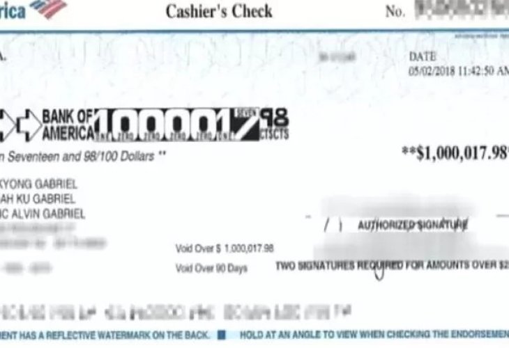 When Erik Elvin Gabriel from the U.S. unexpectedly found a check for a million dollars seemingly meant for him from Bank of America, it took him more than a few moments to grasp what had happened.