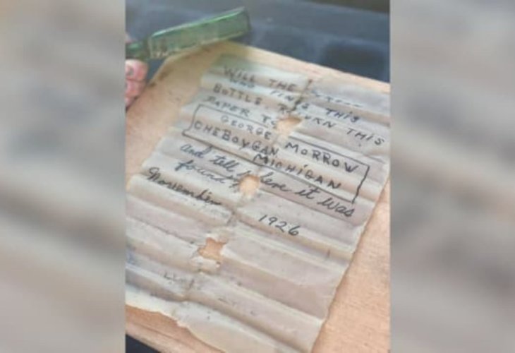 The date indicated that the note was penned in November of 1926, nearly a century ago, containing the message: "Will the finder of this message return this paper to George Morrow of Cheboygan, Michigan, and let him know where it was found?"