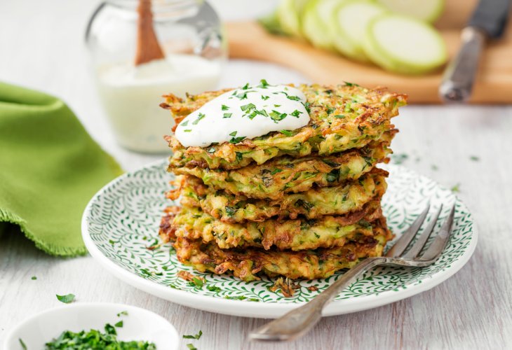 You can grate zucchini with herbs, leek, onion, beet, or celery to create a beautiful vegetable latke mix. Add eggs and cheeses for protein and calcium.