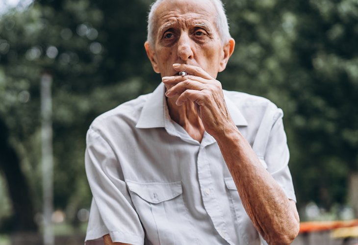 Right before Yizkor, the memorial prayer, there was a short break. I stepped outside to get some fresh air and there, sitting at the bus stop across from the building, was a man smoking a cigarette.