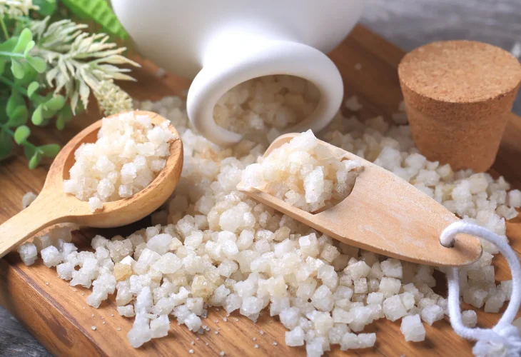 Epsom salt is rich in magnesium, an essential mineral involved in many processes in the body. When dissolved in warm water, magnesium is released and can be absorbed through the skin. This mineral is known for its ability to relax muscles and reduce inflammation, which may help ease tension and discomfort in irritated tissues.
