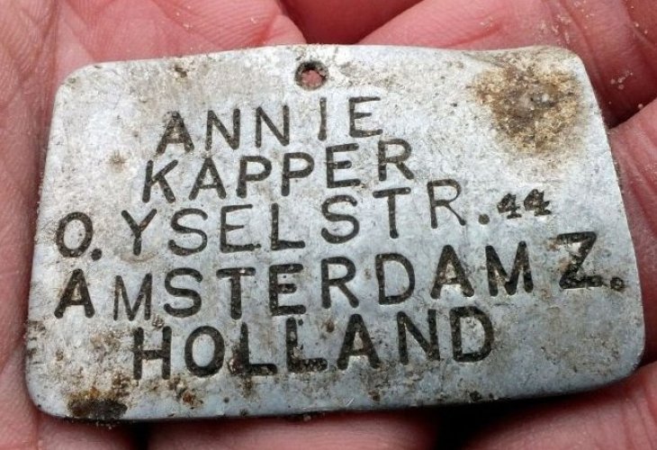 Annie Kapper's identification tag (Photo: Yoram Haimi)Personal identification tags belonging to four children aged 5–11 from Amsterdam were uncovered during archaeological excavations at the Sobibor death camp in Poland.