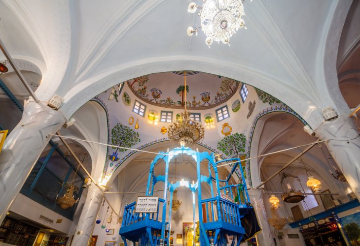 Beyond its holiness and historical significance, the synagogue is adorned with intricate artwork, including the symbols of the Twelve Tribes, an array of musical instruments, and five crowns: Torah, Priesthood, Kingship, Good Name, and the unique Crown of Salvation. A striking depiction of the Temple decorates the dome. Modern artworks, intended for tourists, also hang within the synagogue—though whether Abuhav himself would have approved remains uncertain.