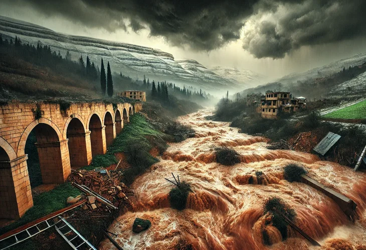 “Heavy clouds crowded over the mountains of Baalbek. On Shabbat, thunder was heard, and the valleys filled with snow, combined with rain that melted it. The flood began early on Sunday, with waters originating from Ain al-Fija, sweeping massive rocks along their path and uprooting countless trees. By the eighth hour of the day, the waters reached Damascus, rising a foot above the city walls and elsewhere as high as eleven feet. The flood entered through the Paradise Gate after destroying the bridge supports at the Salaam Gate and extended to the madrasa. It rose to more than twice a man’s height. The flood lasted three hours, destroying many houses and garden towers, drowning every pilgrim without exception, along with countless camels and livestock. Rivers filled with red mud, trees were torn from the ground, and mills were swept away and ruined.”