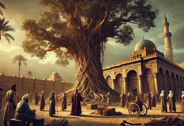 When the Sultan’s envoys arrived the next morning, the tree appeared bent and withered, its branches drooping. Regretfully, they decided it wasn’t worth using and set off to find another tree. However, as soon as they left, the tree revived, standing tall and proud with its branches reaching skyward. The tree had a miraculous power, ensuring its own survival.
