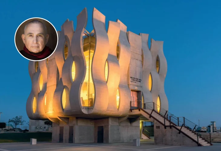 One example is the synagogue he designed at the IDF Officers’ Training Base (Bahad 1). “I designed it in the form of a burning bush — echoing the verse ‘and the bush was not consumed.’ Just as Moshe received his mission there, so too do the soldiers here receive their mission to protect the people of Israel.”
