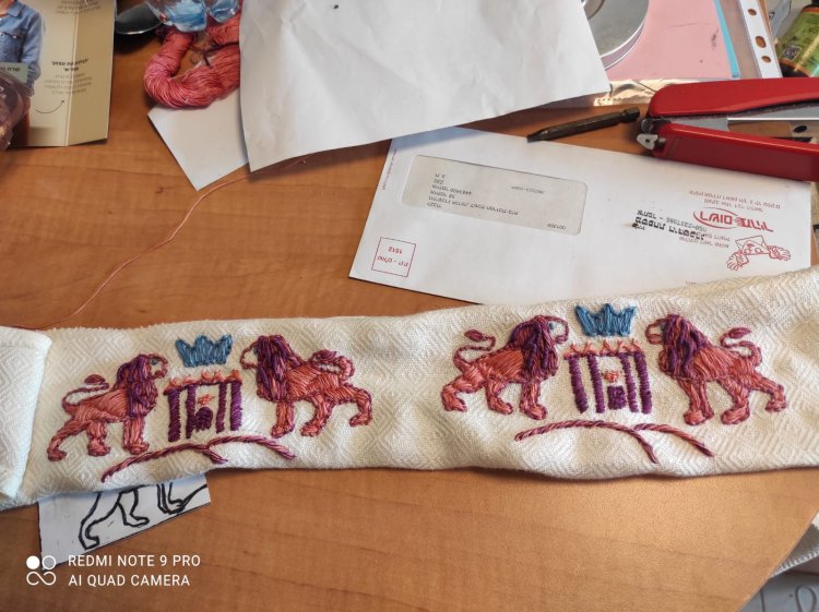 "I started learning in a course provided by the 'Temple Institute,' alongside Maayan Ayesh, another creative artist interested in this type of craft. We attended the course with other women, delving deeply into the study. We learned precisely how to produce the curtain, what materials it requires, and what the writings of Rambam say, among other topics. At the end of the lessons, we wished to start weaving, but we were told that hands-on practice was not part of the course. At that point, Maayan and I offered the Temple Institute that we would conduct the practical course, teaching women from the art field how to embroider the Temple curtain."