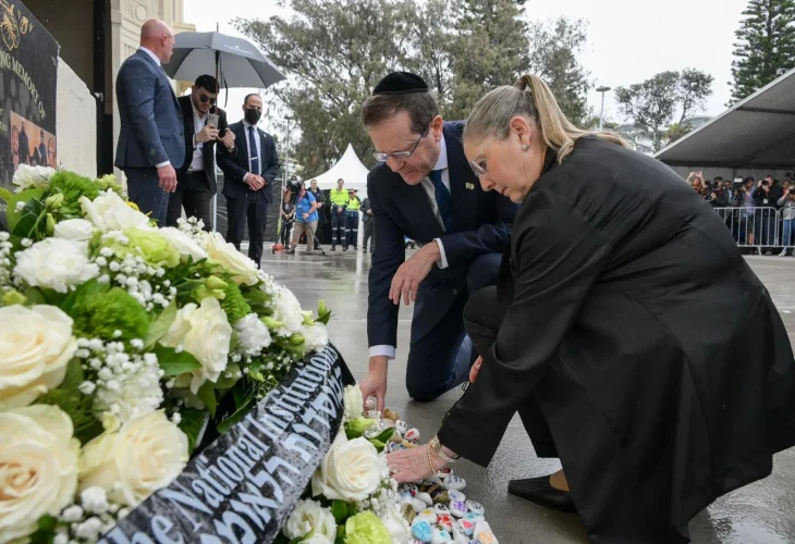 Isaac and Michael Herzog in Bondi, Australia (Maayan Tof/GPO)Israeli President Isaac Herzog arrived in Sydney on Monday morning and laid a wreath and two stones from Jerusalem at Bondi Pavilion, marking the start of an official visit following the December 14 terror attack that killed 15 people at a Chanukkah celebration.