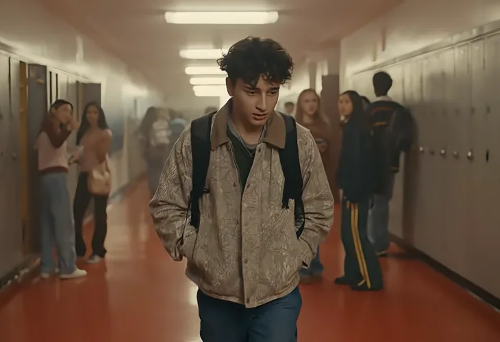 The ad, titled “Sticky Note,” aired during the Super Bowl and portrays a Jewish high school student being harassed by classmates, who place a sticker reading “dirty Jew” on his backpack. A Black classmate intervenes, covering the note with a blue square and offering support. On-screen text states that two in three Jewish teens have experienced antisemitism, urging viewers to share a blue square emoji to show solidarity.