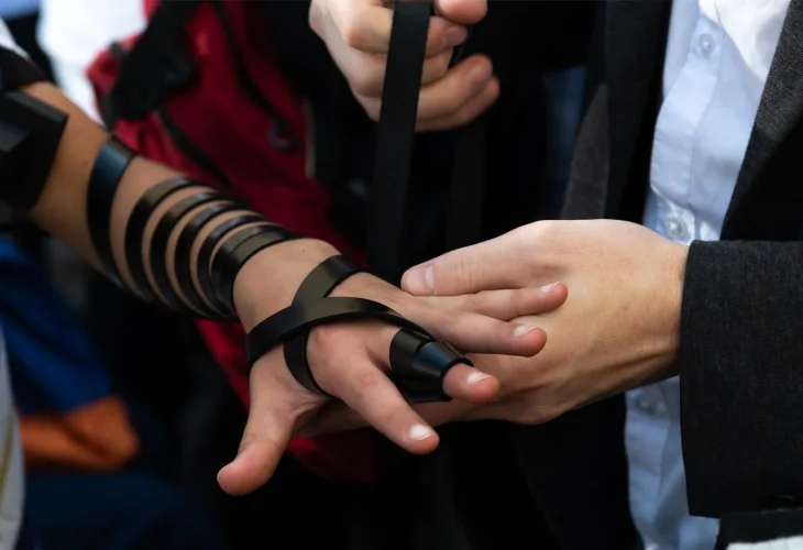 Among the guests was Dr. Steven Jackson, who came especially for the occasion. One of the most emotional moments of the celebration was when the doctor stood beside Nadav and helped him put on tefillin.