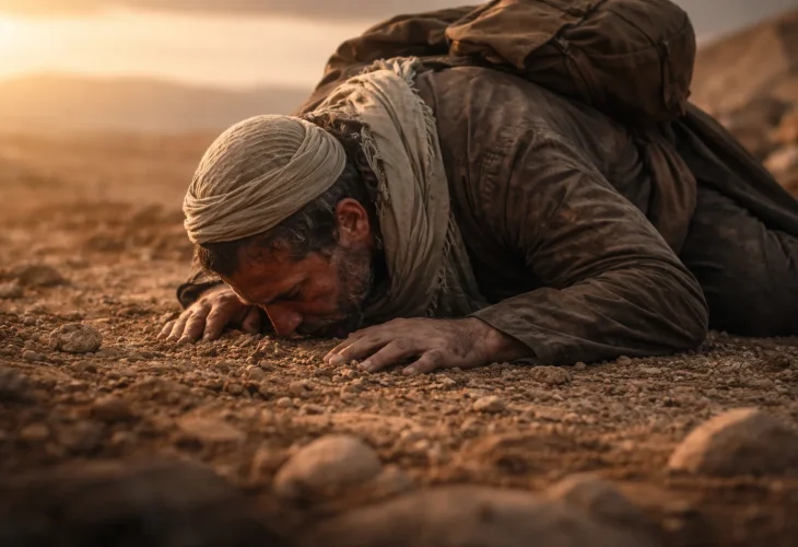 The man immediately bent down, stretched himself on the ground, and kissed the soil with emotion and devotion.