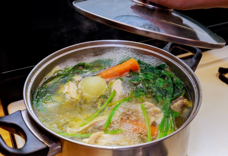(Illustrative photo: Shutterstock)4 chicken leg quarters 1/2 liter dry red wine 2 turnips 1 onion 1 kohlrabi 1 celery root (celeriac) 1 parsley root 1 head of garlic 1 basket (about 250 g) button mushrooms 12 sprigs parsley 4 celery stalks 5 bay leaves 10 allspice berries Salt Black pepper About 60 ml olive oil (for frying)Ingredients