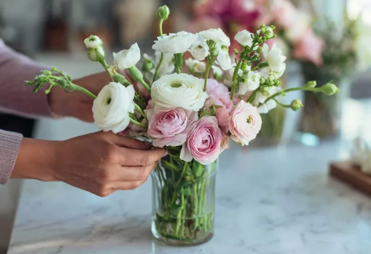If you want longer-lasting blooms, choose hardy varieties like chrysanthemums, lisianthus, carnations, or eucalyptus. If you buy roses, check whether the thorns have been removed, and handle them carefully if not.