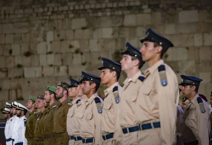 Israeli soldiers stand at attention by the Israeli flag at half mast during a Memorial Day ceremony at the Western Wall, Judaism's holiest site, in Jerusalem's Old City, April 20, 2026, as Israel commemorates its fallen soldiers and victims of terror. PhoIsrael marked the start of Memorial Day (Yom Hazikaron) on Monday evening, with national ceremonies in Jerusalem, where IDF Chief of Staff Eyal Zamir told bereaved families, “I cannot offer true comfort,” as he stood before them at the Western Wall. Prime Minister Benjamin Netanyahu and President Isaac Herzog also addressed the nation, tying the day of remembrance to Israel’s ongoing war and internal cohesion. The speeches came as Israel honors its fallen, now totaling 25,644 members of the security forces, while continuing to fight a multi-front war.