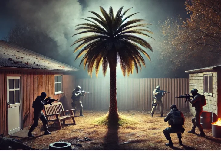 The only hiding place they found was a palm tree in their yard—bare, stripped of its branches because Itai had recently used them to build his family’s very first sukkah.