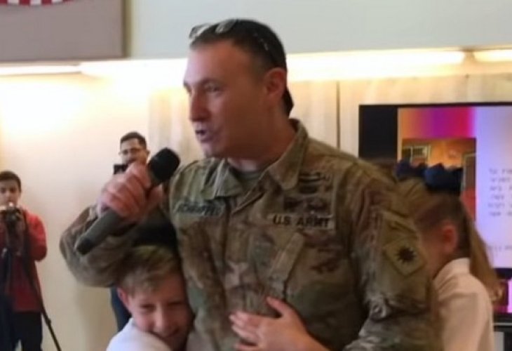 Major Moshe Sheinfeld, serving in Afghanistan, surprised his three children in the middle of a Purim celebration at the Orthodox 'Hillel' school, to the amazement of dozens of parents and other students from Beverly Hills.