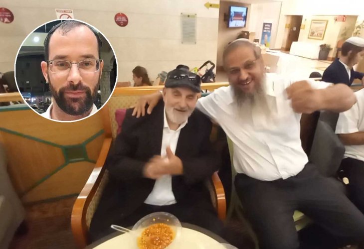 In the circle: Eitan Alpert, Rabbi Azriel (Rabbi of Shatula) on the rightAbout 18 years ago, Eitan Alpert, then a young student and father to a newborn, found himself being evacuated along with thousands of Gush Katif residents from the settlement he dearly loved. The 'Torat Chaim' Yeshiva community to which Alpert belonged was housed by the state in the Plaza Hotel in Nof HaGalil, where they stayed for about a month before moving to another hotel.
