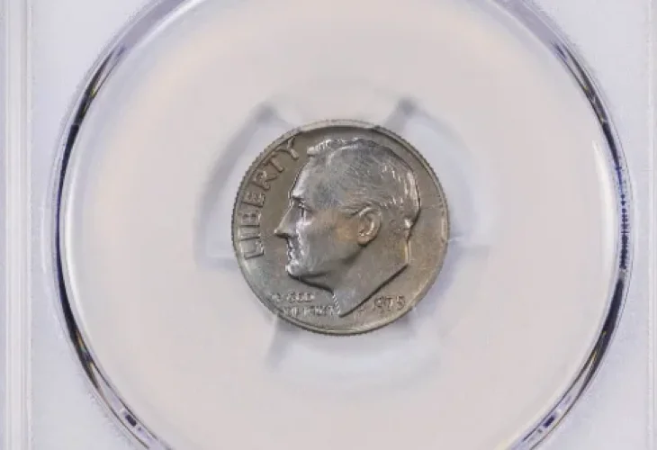 This coin was minted in 1975 and features President Franklin D. Roosevelt, but unlike other coins minted in San Francisco, it lacks the "S" mark indicating its origin in that city.