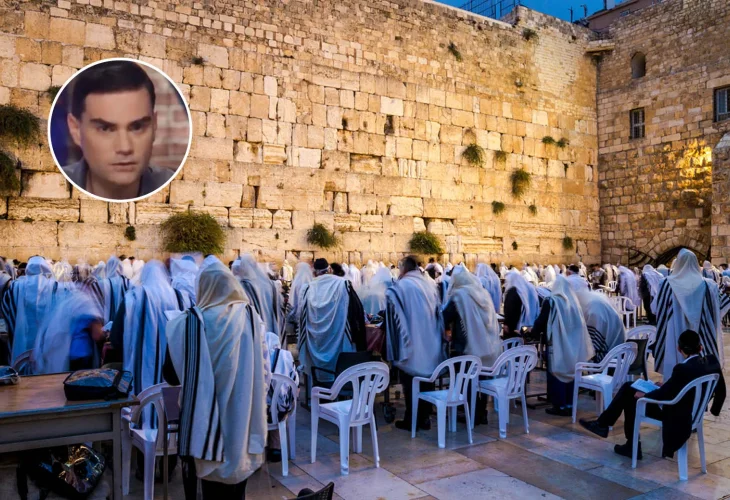 Inset: Ben Shapiro (background photo: shutterstock)American commentator Ben Shapiro, considered a key figure in the international media world, arrived with his family for a special visit to the Western Wall. During his visit to Israel, he chose to dedicate time for a tour and prayer at one of Judaism's holiest sites.