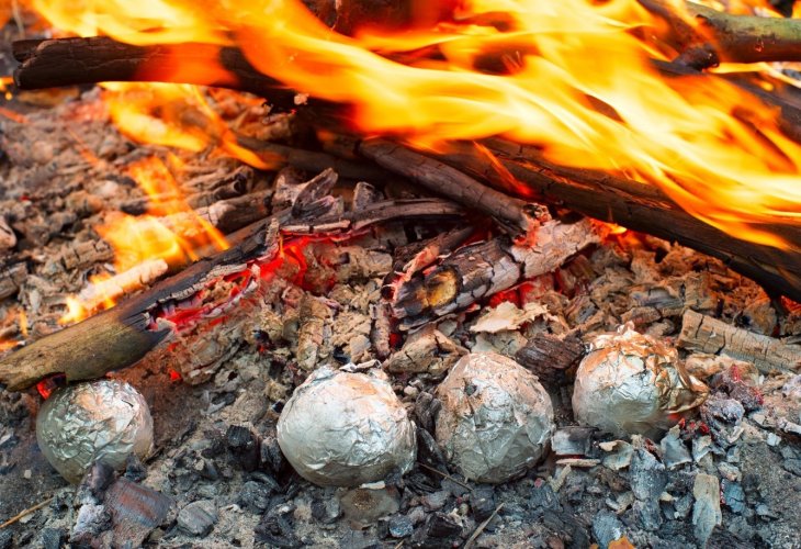 2. The well-known tradition of tossing a potato into the bonfire: Potatoes belong to the nightshade family (just like tomatoes and eggplants) and are actually underground stems called tubers. Potatoes are rich in potassium and B vitamins, and even contain some vitamin C. Nutritionally, potatoes belong to the carbohydrate group, with 100 grams containing between 17-20 grams of carbs. By comparison, a slice of regular bread contains about 15 grams of carbohydrates. Additionally, potatoes have a high glycemic index, meaning they break down into sugar relatively quickly, which can cause a sharp and rapid rise in blood sugar levels after consumption. It's good to know that boiled potatoes have a higher index compared to baked potatoes, and sweet potatoes have an even lower index compared to potatoes in any form. If you wash the potato skins thoroughly, you can eat them too, which provides more vitamins and lowers the glycemic index. It's important to remember that for some children, potatoes can significantly raise blood sugar levels, so those who know this should eat a small potato or half of a larger one. You can also throw whole eggplants (with very few carbohydrates), sweet potatoes, or Jerusalem artichokes wrapped in foil into the bonfire, as they have a low glycemic index and likely contribute less to blood sugar spikes.